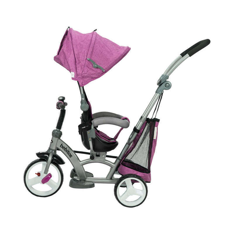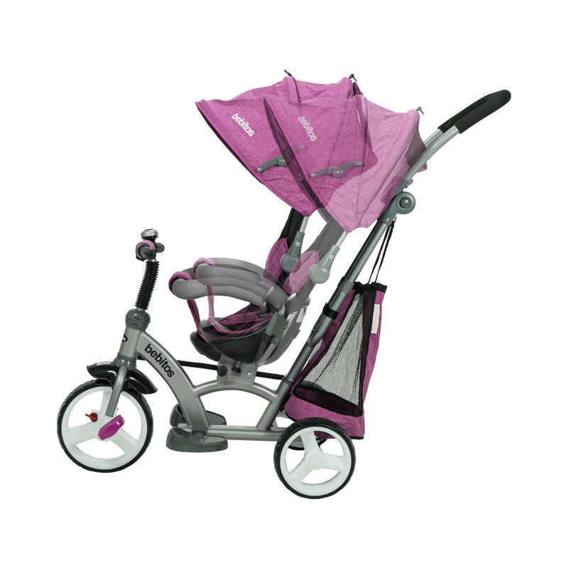 El triciclo convertible  que acompañará a tu niño desde los 12 meses hasta los 3 años aproximadamente. Capota extraíble con visor, expandible para mayor protección de los rayos del sol. Respaldo de tela antitranspirante. GIRA 360º!! Arnés de seguridad de 3 puntos acolchados. Apoyapiés regulables hacia adelante o atrás. Gran mochila colgante porta objetos. Timbre. Ruedas de goma, con sistema free wheel para que no giren los pedales y no dañes los pies de tu pequeño.Totalmente desmontable para que al crecer lo pueda usar solito!!