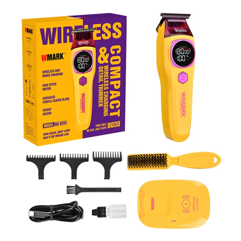 La Wmark NG-8204 es una trimmer profesional diseñada para detalles, delineados y acabados de precisión, ideal para barberías y uso personal exigente. Combina potencia, diseño moderno y practicidad gracias a su carga inalámbrica y pantalla digital inteligente.