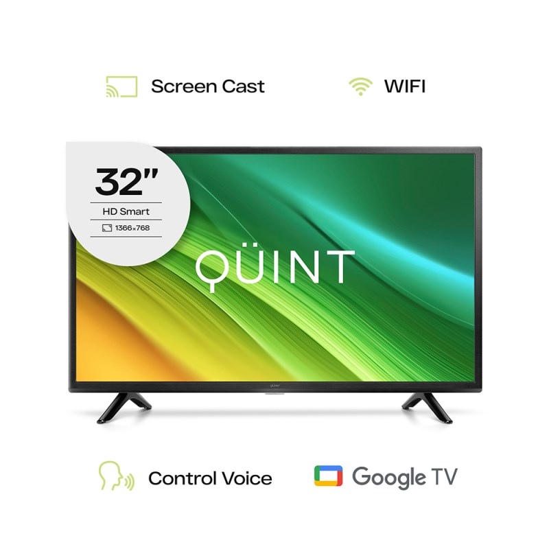 El TV SMT 32P HD QT-32HD20312-257 GOOGLE TV QUINT llega como una pantalla Smart de 32 pulgadas con resolución HD, sistema operativo Google TV y conectividad pensada para streaming y entretenimiento cotidiano, combinando acceso a apps populares como Netflix y YouTube con funciones de control por voz y Chromecast integrado.