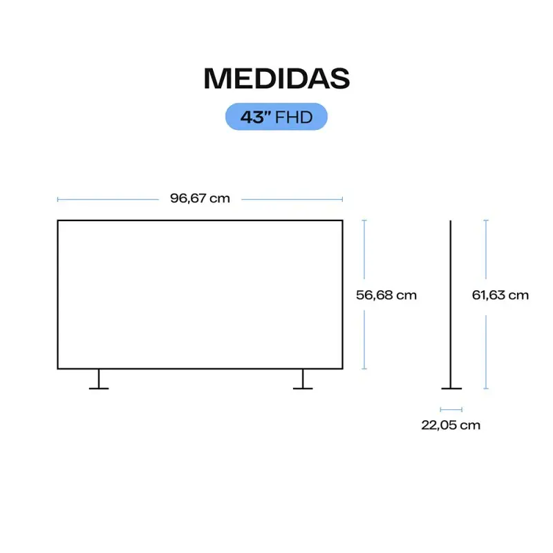 Con un bisel discreto y un soporte estable, este televisor se integra fácilmente en salones modernos o habitaciones. También es compatible con montaje en pared, permitiendo aprovechar el espacio y lograr una instalación limpia y profesional.