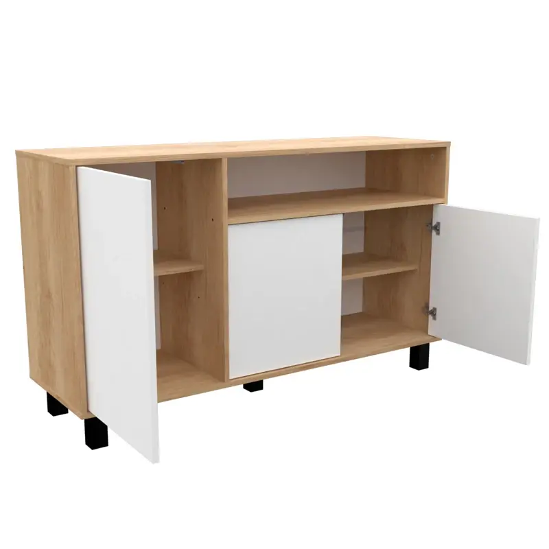 VAJILLERO DOORS 130 *FABRICANTE: Mosconi*MEDIDAS PRODUCTO ARMADO: 129X77X40 cm. Peso 36 kg.*COLORES DISPONIBLES: Helsinki fr. Blanco- Helsinki fr. Negro*MATERIAL: melamina sobre MDP 15 mm.*3 puertas (apertura batiente).*3 estantes fijos.*5 patas regulables de plastico color negro pintado.PESO MÁXIMO SOPORTADO TOTAL: 80 kg. PACKAGING: 1 BULTO Medidas: 151x42x11 cm.- Peso: 40 kg.