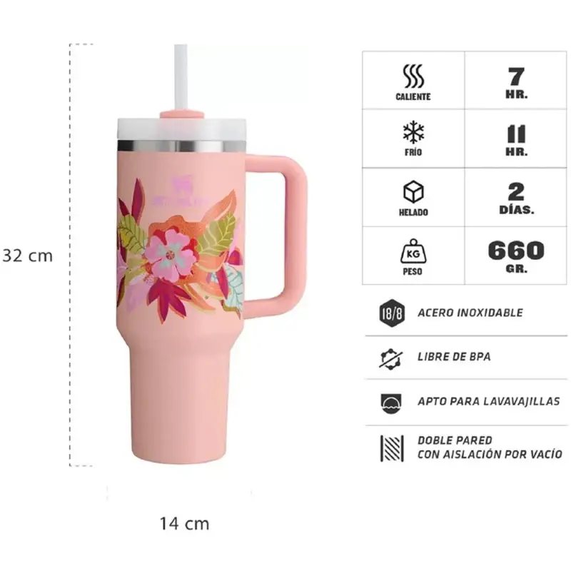 VASO QUENCHER 10-10824-783 1.1L TROPIC STANLEY VASO QUENCHER 2.0 1.1 L.- TROPIC FLOWER- Modelo 10-10824-783- Garantia de fabrica de por vida- Origen China