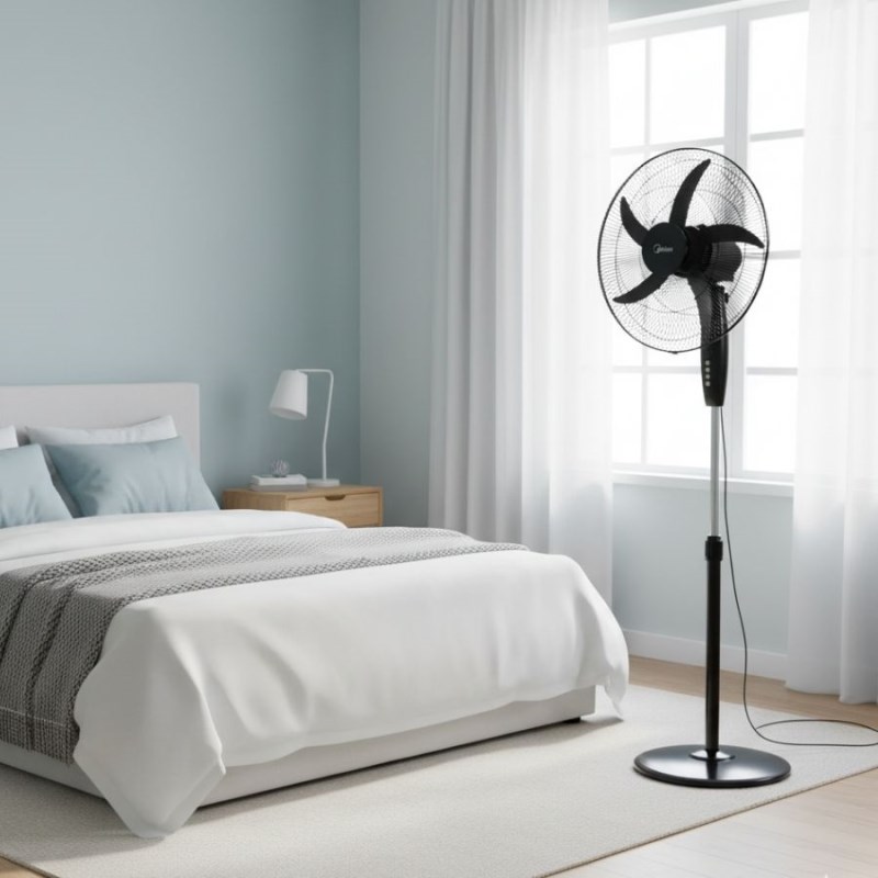Diseño.El espacio pequeño es lo de menos, este equipo cuenta con una estructura compacta y resistente, que permite adaptarse en cualquier lugar donde lo coloques. Las aspas de tipo hélice de avión brinda un mayor rendimiento, incluso con la velocidad mínima activa.El motor tiene una potencia de 85 W.Características.El ventilador 20B1AE1 de Midea cuenta con una medida de 20 pulgadas, es un producto de pie. Cuenta con 5 aspas superresistentes que permite tener una brisa de forma inmediata incluso con el nivel bajo de velocidad.Funciones.El producto cuenta con 3 velocidades que permite usarlo según la intensidad que desees, es de bajo consumo con posicionamiento regulable para acomodarlos, según la zona donde coloques el ventilador. Además, posee cabezal oscilante.