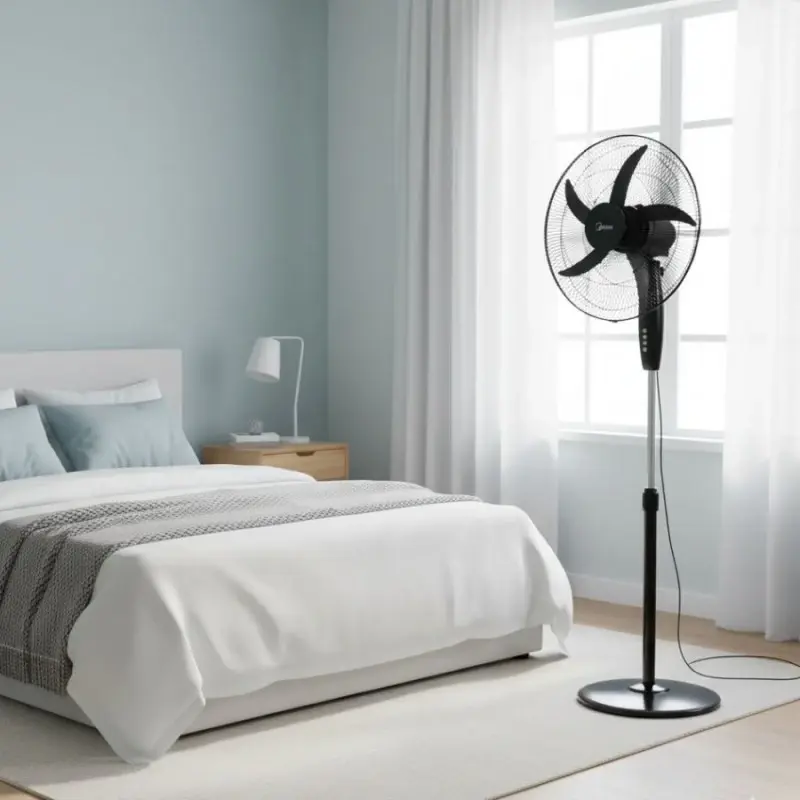 Diseño.El espacio pequeño es lo de menos, este equipo cuenta con una estructura compacta y resistente, que permite adaptarse en cualquier lugar donde lo coloques. Las aspas de tipo hélice de avión brinda un mayor rendimiento, incluso con la velocidad mínima activa.El motor tiene una potencia de 85 W.Características.El ventilador 20B1AE1 de Midea cuenta con una medida de 20 pulgadas, es un producto de pie. Cuenta con 5 aspas superresistentes que permite tener una brisa de forma inmediata incluso con el nivel bajo de velocidad.Funciones.El producto cuenta con 3 velocidades que permite usarlo según la intensidad que desees, es de bajo consumo con posicionamiento regulable para acomodarlos, según la zona donde coloques el ventilador. Además, posee cabezal oscilante.