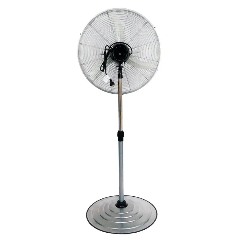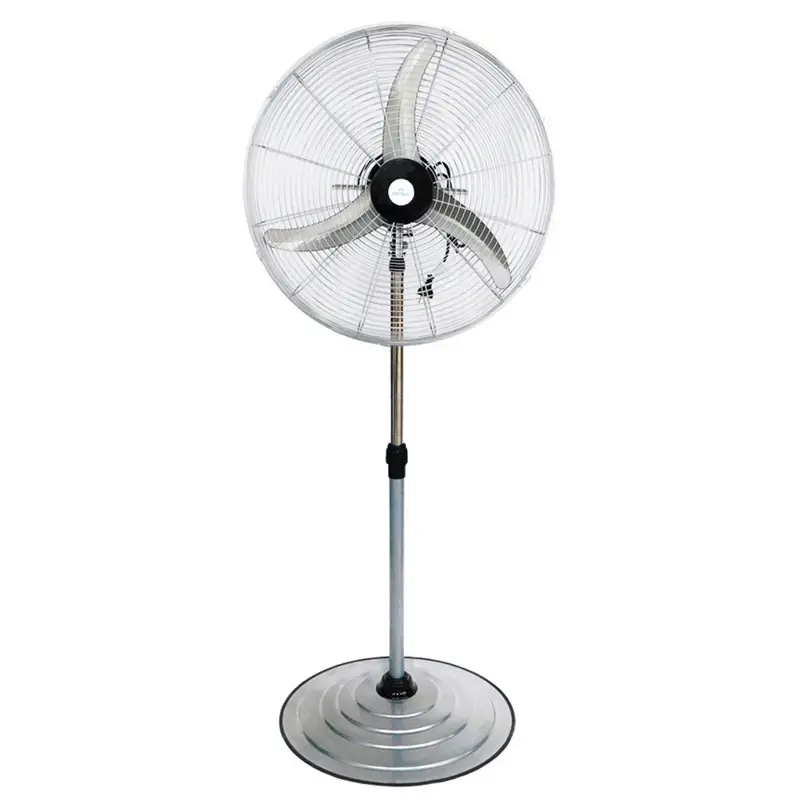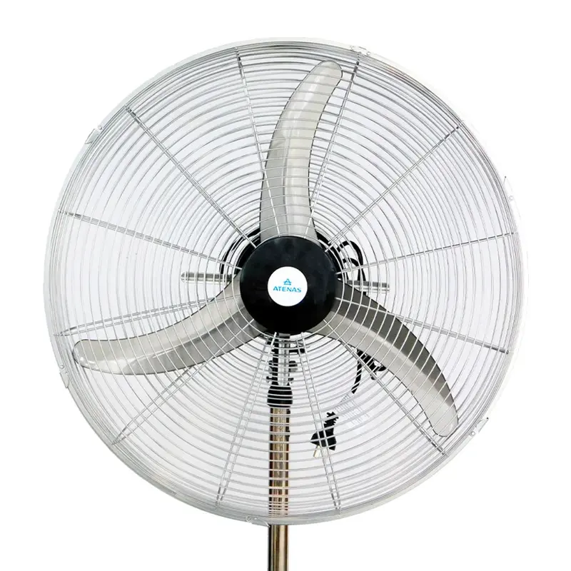 Ventilador de Pie Industrial Oscilante 26 pulgadas (65 cm) – Motor Atenas 26PV es una solución robusta y eficiente para ventilar espacios medianos y grandes. Con un diseño funcional y materiales de alta calidad, este ventilador industrial combina potencia, durabilidad y estética.Características principales:Diámetro de 26 pulgadas (65 cm): Proporciona un flujo de aire potente y constante, ideal para mantener espacios ventilados.Cabezal oscilante 180°: Distribuye el aire de manera uniforme, cubriendo un rango amplio para máxima eficiencia.Aspas de aluminio: Tres palas aerodinámicas diseñadas para generar un caudal de aire eficiente con un bajo nivel de ruido.Motor nacional potenciado: Motor monofásico de 200W, equipado con rodamientos blindados que garantizan un rendimiento confiable y duradero.Velocidades ajustables: Tres configuraciones para adaptar la intensidad del flujo de aire según las necesidades del ambiente.Base circular reforzada: Ofrece estabilidad adicional, evitando desbalances incluso en velocidades altas.Diseño resistente: Construido con un caño interior cromado y exterior pintado en color gris, combina durabilidad con un acabado estético.Alcance de hasta 10 metros: Cubre un área extensa, asegurando una ventilación eficiente y constante.Reja de protección metálica: Cumple con las normas de seguridad vigentes, brindando protección tanto al usuario como al equipo.Versatilidad: Adecuado tanto para uso comercial como industrial, cubriendo diversas aplicaciones.Bajo nivel sonoro: Operación silenciosa, ideal para espacios donde el ruido debe ser reducido.Fácil de usar: Ajustes simples y montaje rápido.El ventilador de pie industrial oscilante 26? motor Atenas es una solución confiable para mantener cualquier espacio fresco y ventilado, garantizando comodidad en todo momento. Garantía de 1 año.