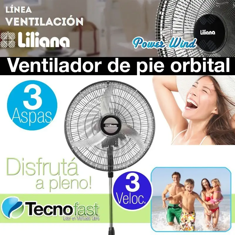 - Liliana Modelo: VVPM2016 Características • Barral telesco´pico meta´lico de 1,70 m. • 3 aspas metálicas. • Parrilla meta´lica negra. • Base redonda. • Super silencioso. • 3 velocidades. • Diámetro de 20'. • Potencia: 90 watts. • Sistema Orbital: Direcciona la brisa en forma horizontal y vertical. Este sistema permite que el cabezal del ventilador se desplace sobre su eje en forma elíptica, distribuyendo la brisa fresca en forma suave y uniforme hacia ambos lados como así también hacia arriba y hacia abajo. Esta acción posibilita la recirculación permanente del aire, permite bajar la temperatura del ambiente brindando una confortable sensación de frescura y bienestar. • Dispositivo Repeler: Permite colocar una tableta repelente de insectos de tamaño estándar. Las partículas liberadas por dichas tabletas son tomadas por las aspas del ventilador y distribuidas uniformemente en todo el ambiente. **************************************************************************************************************************************************************** 72hs de prueba con nosotros GARANTIA DE 24 MESES CON LA MARCA
