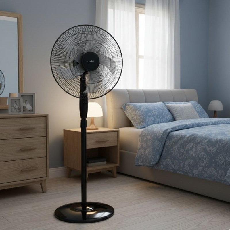 VEN PIE V18N-2202 1200RPM 3V NG CODINI Este ventilador proporciona aire en movimiento a través de sus paletas ultra livianas. Es posible regular la velocidad del motor utilizando el selector.- Ademàs, podrà obtener una mejor distribución del aire utilizando el botón de oscilación ubicado en la carcasa del motor. También podrá regular la altura ajustando el barral y la inclinación para obtener laventilación deseada Altura 1, 70 m Cantidad de aspas 5 Corriente 220-240 V