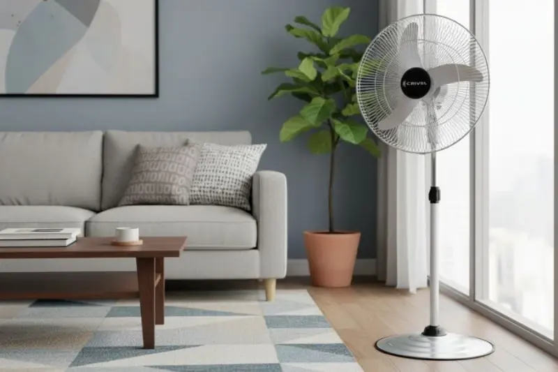 -VENTILADOR DE PIE V9 20" CRIVEL- 3 Velocidades- Movimiento oscilante- Motor potenciado y silencioso- 3 Aspas metálicas- Base circular metálica- Barral cromado hasta 1.80 mts de altura- Reja de protección metálica- Modelo: V9- Garantia Fabricante: 12 meses- Pais de Origen: Argentina