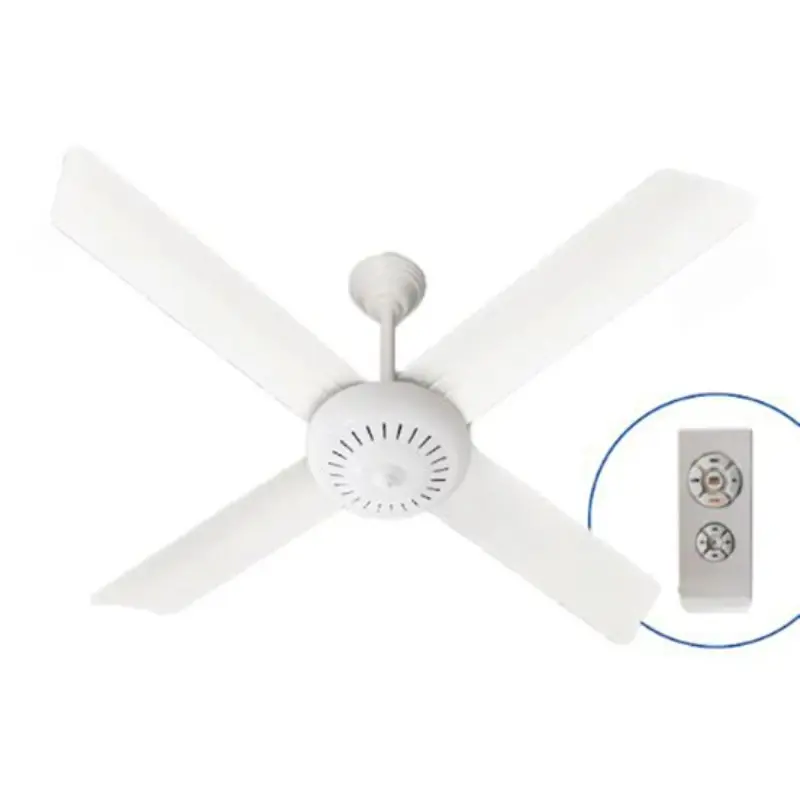 -VENTILADOR DE TECHO VTA-420 BLANCO SEVERBON- motor AC de 85W- sin luminaria- 300RPM- Diámetro 1.20m- 4 palas de acero color blanco- Incluye control remoto- Modelo VTA-420- Garantia Fabricante 12 meses- Pais de Origen Argentina