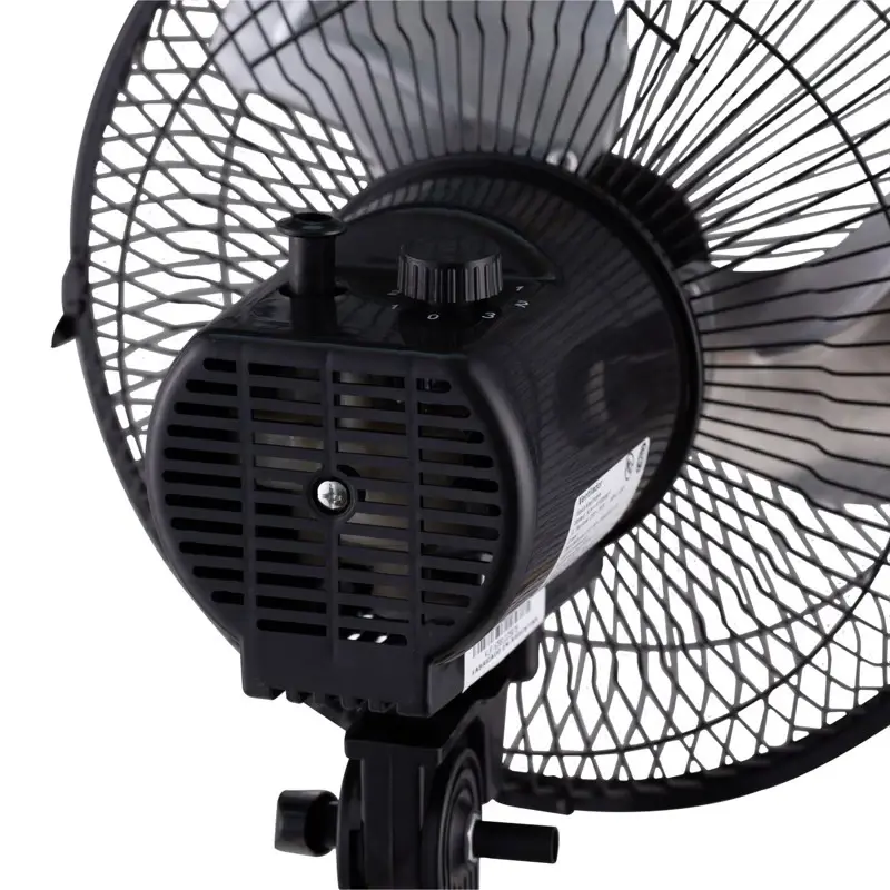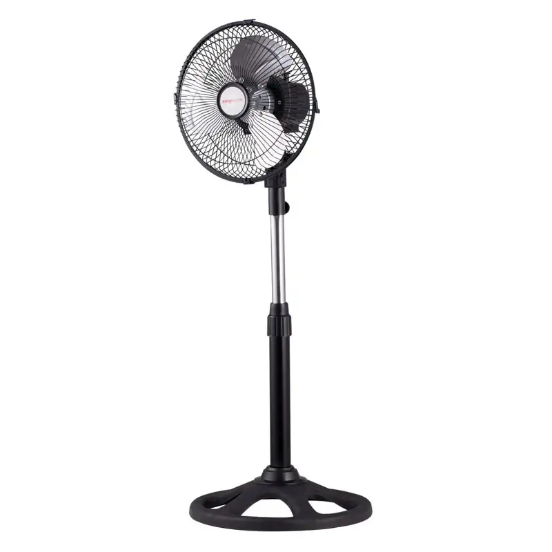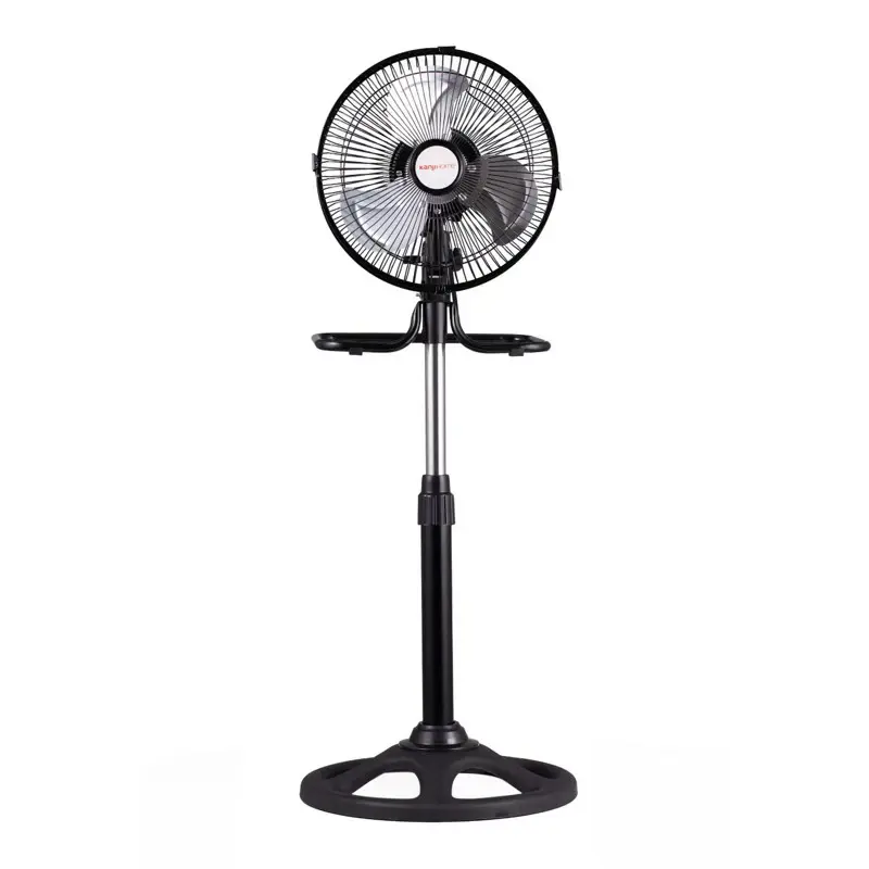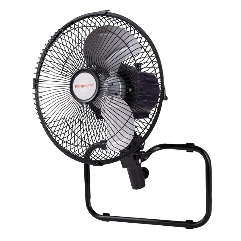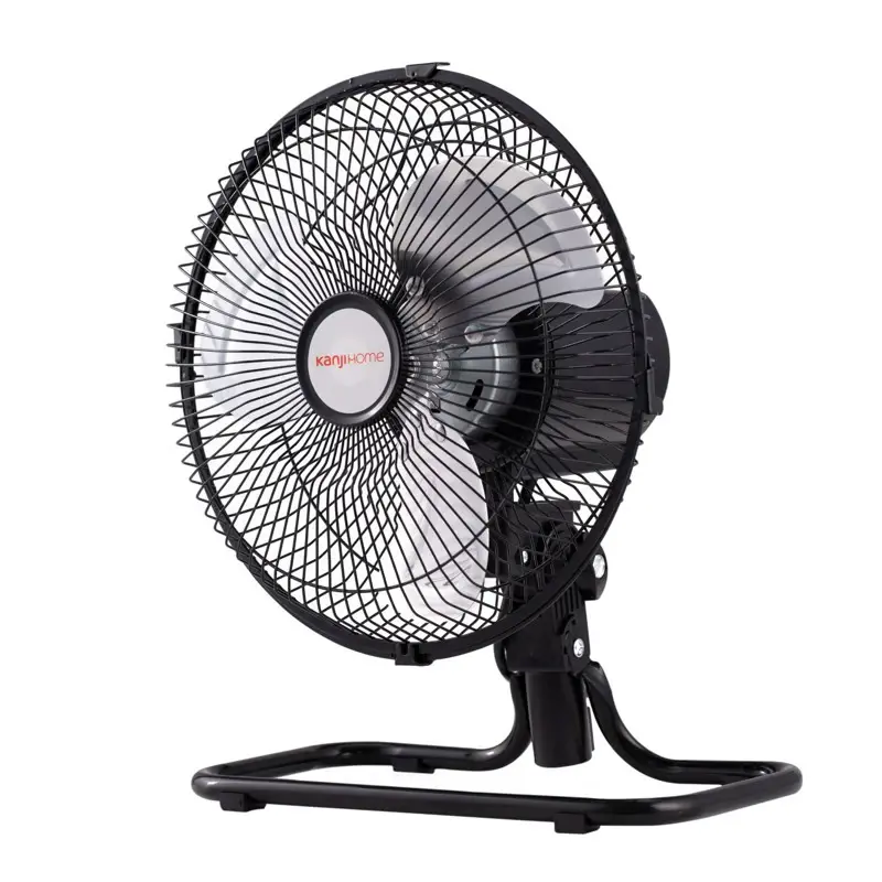 Ventilador 10?Código de producto: KJH-FH1306Especificaciones:• 3 en 1: Colgar – Mesa – Pie• 3 velocidades• 3 paletas metálicas• Regulable en altura• Potencia: 65W