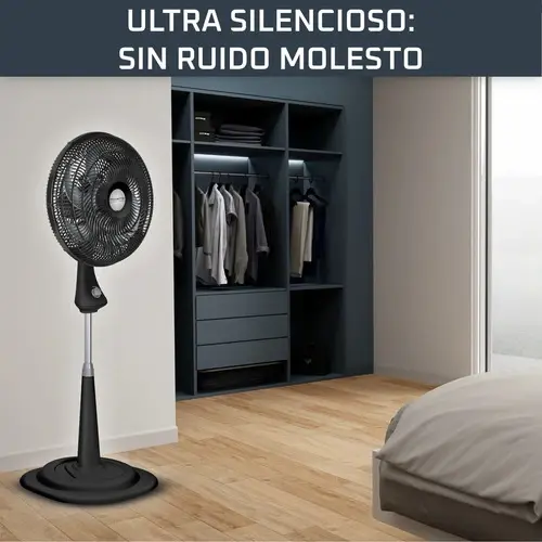 Ventilador Rowenta Silence Force 2 en 1 18"Versátil y silencioso para disfrutar el verano• Versatilidad 2 en 1 para usarlo como ventilador de pie o de mesa.• Personalizá el flujo de aire con sus 3 velocidades y disfrutá de un ventilador silencioso ideal para descansar o trabajar.• Diseño con 6 aspas aerodinámicas para maximizar el caudal de aire con menos ruido y mejorar la eficiencia energética sin comprometer la potencia.• Mallas removibles y seguras para una limpieza rápida.• Oscilación vertical y horizontal de 90º, distribuye el aire de forma homogénea en todo el ambiente.