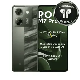 Te presentamos el Xiaomi POCO M7 Pro 5G, el smartphone que viene a romper el mercado de la gama media ofreciendo especificaciones de nivel superior. Conectividad ultrarrápida, una pantalla inmersiva y un rendimiento espectacular para que la velocidad sea tu nueva norma sin pagar de más.Rendimiento y CapacidadProcesador: Equipado con un avanzado procesador MediaTek Dimensity 5G, diseñado para brindarte un rendimiento estable y fluido en tus redes sociales, series y juegos favoritos, aprovechando al máximo la velocidad de las nuevas redes de internet.Memoria y Almacenamiento: ¡El equilibrio perfecto! Cuenta con unos excelentes 8 GB de RAM, garantizando que puedas abrir múltiples aplicaciones al mismo tiempo con total soltura. Además, sus 256 GB de almacenamiento interno te dan espacio de sobra para conservar miles de fotos, videos y juegos sin preocuparte por el espacio.Sistema Operativo: Funciona bajo el entorno de Xiaomi HyperOS, brindando una experiencia de usuario súper moderna, ligera, segura y altamente personalizable.Pantalla y VisualizaciónDisplay: Espectacular pantalla inmersiva Flow AMOLED de 6.67 pulgadas con resolución FHD+ y una tasa de refresco ultra fluida de 120 Hz. Disfrutá de colores súper vivos, negros profundos y un brillo altísimo que te permite usar el celular a plena luz del día sin forzar la vista.Fotografía y VideoCámaras: Avanzado sistema triple que destaca por su sensor principal de 64 MP con Estabilización Óptica (OIS), una tecnología premium que elimina los videos temblorosos y captura mucha más luz de noche. Lo acompañan un lente ultra gran angular para paisajes y una cámara macro. Para tus selfies, incorpora una nítida cámara frontal de 16 MP.Batería y ConectividadAutonomía: Su gran batería de 5000 mAh te asegura energía de sobra para toda la jornada de uso intenso. Además, está preparado para soportar tecnología de carga turbo de 67W, permitiéndote recuperar horas de batería en apenas unos minutos.Conexiones: Preparado para volar con soporte para Redes 5G, Wi-Fi, Bluetooth 5.3, sonido inmersivo con altavoces duales, un moderno lector de huellas dactilares integrado en la pantalla, NFC y certificación IP54 (resistencia a salpicaduras y polvo).Información Adicional¿Qué hay en la caja?: Incluye cable USB-C y guía de inicio rápido.Colores: Disponibilidad sujeta a stock al momento de la compra.Aclaración: Las imágenes son de carácter ilustrativo.¡Bienvenido a HAUSTORE! Te acercamos la mejor tecnología con la confianza que buscás. ¡Llevá tu experiencia digital a la máxima velocidad con el Xiaomi POCO M7 Pro 5G!